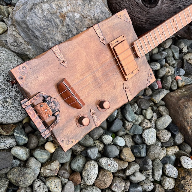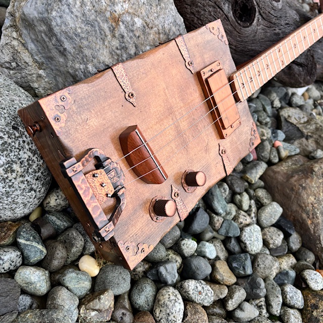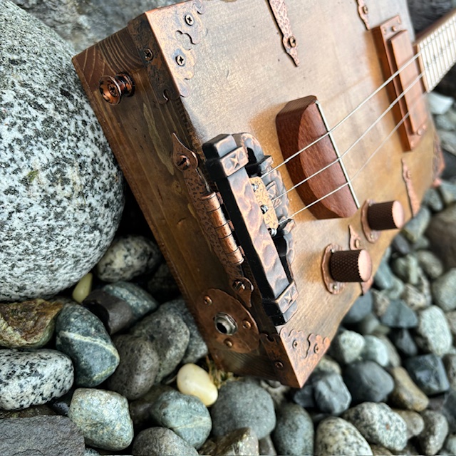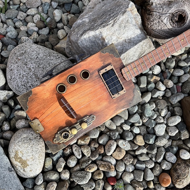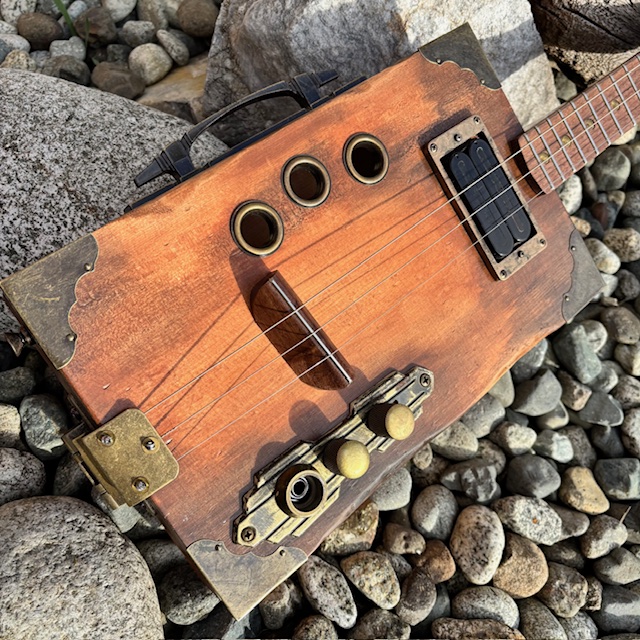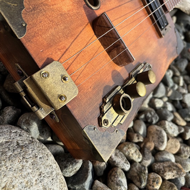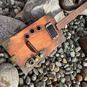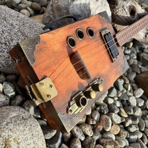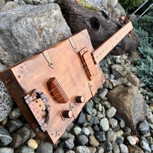 The “Vintage Series” is my personal tribute to those early makers of Cigar Box Guitars. These limited edition guitars, although outfitted with electric components and modern tuners, are specially created to look old and worn as if from many years of playing music on a front porch, around a campfire, or while riding the rails across the country.