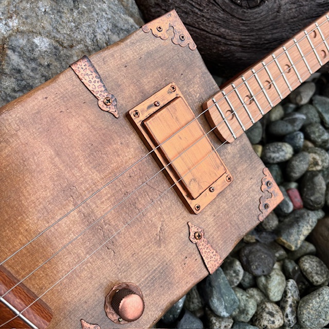 Copper accents on a “Vintage Series” style of guitar always tops my list of beautiful designs. The aged copper gives the guitar instant credibility as something old but tough enough to survive.